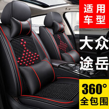 针线跳动 大众途岳汽车坐垫四季通用2021网红新款夏季冰丝座垫全包围座椅套五座小车座套 中国结冰丝款【黑红色】