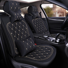 全车五座整套,搭配2个头枕2个抱枕。亚麻布艺材质,透气舒适,环保无味搭配脚垫请点击