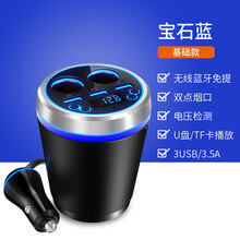 车载充电器蓝牙mp3播放器带氛围灯一拖三多功能汽车点烟器转换头放车里的 基础款-蓝色【无损音质/免提通话/3USB接口】