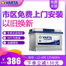 瓦尔塔(VARTA)汽车蓄电池12V60AH蓝标L2-400免维护适配大众POLO标志途观菲亚特 以旧换新 上门安装 标致2008/3008