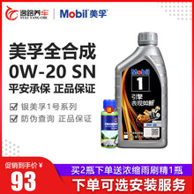美孚(Mobil)机油银美孚1号全合成机油汽车机油发动机润滑油0W-20 SN级 1L