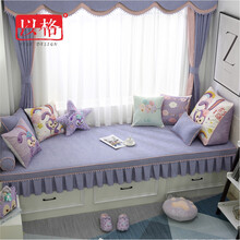 以格 订做卡通动物印花高密度海绵飘窗垫女孩儿童房浅紫色窗台垫阳台坐垫四季通用可拆洗异形定制 浅紫色 面料50/米
