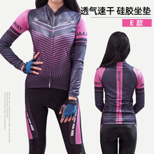 JAAJ-WAY春秋自行车骑行服女套装长袖夏季装备衣公路车山地车骑行裤单车定制 升级款套装 E款【吸湿排汗 透气速干 透气软坐垫】 2XL