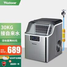 沃拓莱(Watoor)小型迷你家用制冰机商用奶茶店30kg桶装水学生宿舍酒吧台ktv自动方冰块制作机 日产30KG-不锈钢(接自来水)