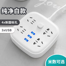 新国标usb插座多功能插排快充电插板1.8米3米多孔接线板家用学生插线板长线排插带开关拖线板 839款 白色 4插位带 3USB 全长0.8米
