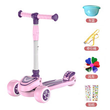 迪士尼新品儿童滑板车可坐可骑滑多功能三合一防摔可推1-12岁男女宝宝可折叠 粉色闪光悍马双轮(无座垫) 送