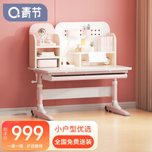 青节 儿童学习桌椅套装可实木桌可调节升降中小学生书桌多功能带书架作业桌写字桌小孩子家用课桌男孩女孩 熊小萌1.0m实木桌【仲夏粉】