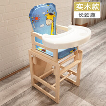 宝宝餐椅儿童木吃饭桌椅婴儿多功能座椅小男女孩凳子木质餐椅 木款:全木材质+长颈鹿坐垫+ 安全带+可拆餐盘