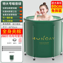 折叠泡澡桶加厚夹棉免安装折叠洗澡桶超大号浴桶沐浴盆沐浴桶家用全身洗澡桶女沐浴桶浴盆澡盆泡澡神器 竹青-免拆装合金支架 80*65cm标配保温盖+坐...