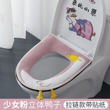 艾贝狸(AEBERY)马桶垫四季通用可爱家用坐垫网红坐便器垫圈加厚坐便套马桶圈垫 拉链款-立体鸭子少女粉【带马桶贴纸】