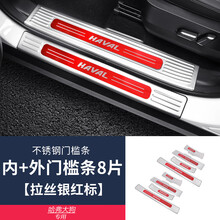 适用于2021长城款哈弗大狗门槛条不锈钢哈佛大狗专用迎宾踏板后护板改装 【内+外门槛条】拉丝银8片-红标-