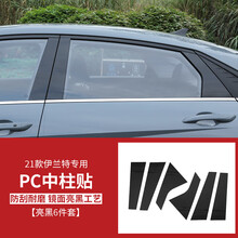 帕肯 适用于2021款第七代伊兰特PC镜面中柱贴车窗亮片贴车身外饰条改装 伊兰特PC中柱贴【亮黑】 6件套