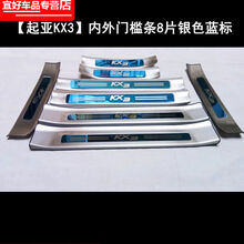适用于20款起亚KX3门槛条饰条改装专用后备箱后护板起亚kx3不锈钢护板迎宾踏板 起亚KX3【内+外-门槛条】银色蓝标
