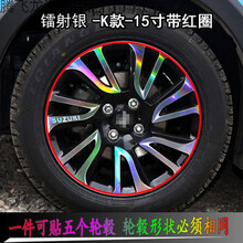 适用于铃木雨燕改装轮毂轮胎钢圈条车贴纸装饰个性贴遮划痕贴纸 七彩镭射银-K款15寸【带红圈】