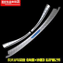 适用于14-20款丰田全新rav4荣放后护板后备箱护板尾箱门槛条RAV4改装不锈钢门槛条 16-19款荣放【内+外后护板3件】银色蓝标