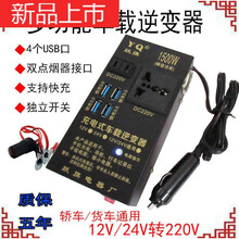 适用于车载逆电充电器通用多功能汽车12伏24v变220v转换噐头插座 黑色4个USB带母座 24V 220V