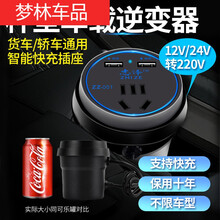 适用于车载12v24v伏通用转220v多功能汽货车用电源插座转换充电器 新款车杯(12v24v通用)Z