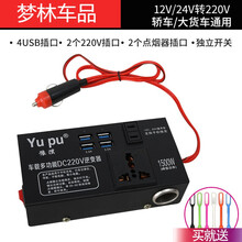 适用于车载多功能12v24v转220V汽货车用插座电源转换器变压充电器 【4usb】12v24转220v直流