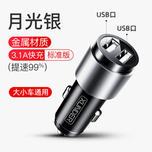 小米生态同款车载充电器手机快充点烟转换插头一拖三车充汽车用多功能usb接口点烟器转换 【3.1A快充-月光银】升级提速99%.