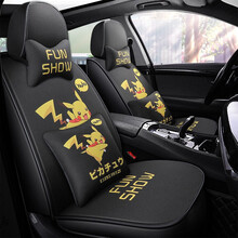 2021新款秋冬卡通汽车座套亚麻汽车坐垫全包围四季通用可爱个性女汽车座垫座椅套四季通用座椅套探岳 皮卡丘款 GSE EC7 GL GS