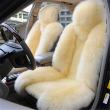 适用于纯羊毛汽车坐垫保暖座套冬季毛绒毛皮一体秋冬季车垫通用长毛垫新款座垫等车型 米色五座坐垫 速腾迈腾途观昂科威汉兰达朗逸博越天籁锐界