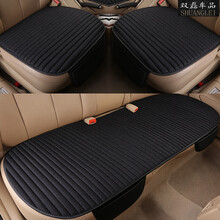 适用于秋冬季汽车坐垫单片夏季防滑免捆绑无靠背单垫三件套亚麻单个车垫四季通用小车座垫 黑色【三件套】 北汽新能源EC180EV160EU260EX系列
