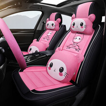 小喜鹊 卡通汽车坐垫新款亚麻布艺四季通用座套小车SUV五座专用透气车椅套秋冬季座垫 卡通版-黑粉色 大众朗逸途观L凌渡帕萨特Polo桑塔纳朗行朗境