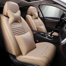 适用于 汽车坐垫四季通用皮麻布全包围座垫秋冬新卡罗拉大众朗逸捷达宝来速腾帕萨特思域雷凌凯美瑞轩逸 米色-豪华版【新品老匠工艺+淳麻荞麦...