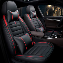 适用于本田XRV广本锋范广汽凌派crv皓影思域汽车座套四季通用汽车坐垫全包围皮秋冬季座垫 黑红色豪华版 日产轩逸天籁骊威逍客奇骏劲客蓝鸟阳光骐...