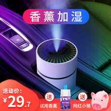 USB车载加湿器迷你汽车空气净化器香薰喷雾器家用静音卧室大容量 炫彩-小米白 充电款/送充电线/棉棒*2/香薰*3