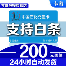 【支持白条 24小时自动发货】中石化加油卡充值卡非IC卡 中国石化加油卡电子卡密全国通用 200元面值