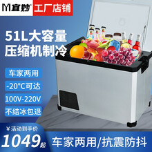 宜妙车载冰箱61L压缩机制冷12V24V220V车家两用冷冻冷藏汽车货车小型冰柜冷柜保温箱 银色61L+德技压缩机+触控显示+【仅车用】