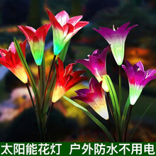 登展 太阳能七彩LED百合花地插草坪灯别墅庭院花园户外装饰园林景观灯经久耐用时尚美观高端大气 太阳能七彩色灯-百合花(红色花瓣)