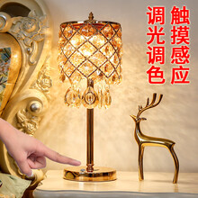 苏柏雪 欧式水晶台灯卧室床头灯创意浪漫奢华简约现代LED温馨家用美式插电充电台灯装饰灯 香槟色款 触摸开关