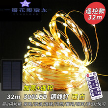太阳能灯户外庭院灯带LED七彩串防水花园别墅装饰星星灯串铜线灯 铜线300灯暖白-32米【升级加亮】带遥控