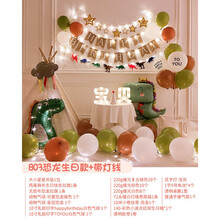 恐龙气球男孩卡通 宝宝儿童周岁生日气球装饰卡通汽车恐龙拉旗女孩派对发光场景布置 803恐龙生日款+带灯线