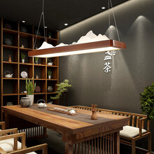 那家灯饰 禅意新中式山水吊灯led实木餐桌吧台复古茶室吊灯餐厅艺术创意轻奢现代简约长条吊灯 吸顶盘-长款100*24cm【无极调光】