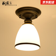 格蕴 美式乡村吸顶灯阳台过道灯具圆形简约卧室玻璃灯罩吸顶灯饰 黑描金小吸