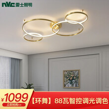雷士(NVC)北欧创意线条轻奢金LED国标全铜吸顶灯客厅灯卧室灯现代简约装饰灯具 【环舞】88瓦智控无极调光 客厅大灯
