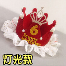 生日帽金色璀璨公主系列 女宝宝百岁一周岁生日派对 皇冠装饰帽 主角帽 红色帽子(加灯光)一个