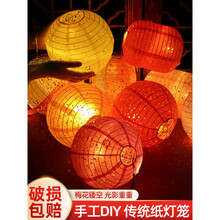 小灯笼挂件 中秋手提古风儿童小灯笼挂饰 diy发光手工折叠纸灯笼节日装饰挂件 粉色圆点镂空_冬瓜纸灯笼