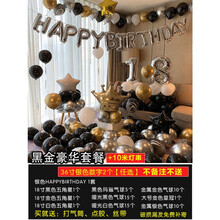 生日派对趴体快乐装饰气球场景布置男生女孩男孩儿童背景墙品 黑金豪华生日套餐+10米灯串【36寸数字备注】