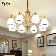 乔乐 全铜美式吊灯 餐厅灯书房客厅灯轻奢现代简约灯 创意灯个性乡村田园风灯饰 卧室大气家用别墅灯 8头吊灯(配送12W三色光源)适用10-18平