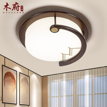 木府现代简约新中式圆形小吸顶灯创意个性衣帽间餐厅书房小卧灯饰黑胡桃实木过道走廊阳台玄灯具中国风 小号(LED三色光源)