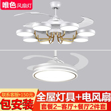 唯色风扇灯 客厅吊灯北欧吊扇灯大厅大灯带电风扇灯具套餐 灯扇一体电扇灯全屋灯饰套装组合 套餐2-客餐2件套(魔饼白8头+变频吊扇42寸) 变频款
