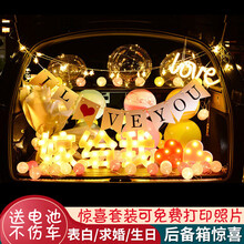 后备箱惊喜 汽车车尾箱礼物布置创意生日气球场景装饰七夕浪漫求婚告白表白女朋友小彩灯闪灯道具可印照片 版嫁给我(带10张照片打印)