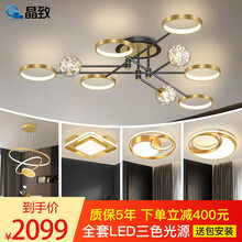 晶致 轻奢客厅灯简约现代吸顶灯北欧大气家用个性创意灯饰2021网红新款灯具套餐三室两厅套餐 套餐1:三室两厅9头135W客厅无极-包安装