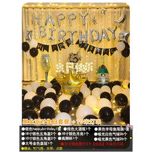 【桃花瓣】男生生日快乐气球派对装饰品场景布置18岁男孩朋友背景墙老公 黑金派对生日套餐+10米灯串