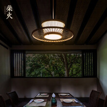 新中式装饰竹艺日式茶室卧室艺术圆形灯具餐厅吧台现代竹编灯吊灯 配暖光LED