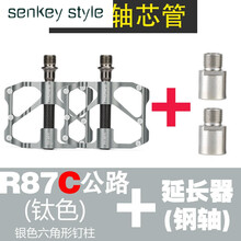 senkey style自行车脚踏板轴承通用公路防滑铝合金培林脚蹬单车配件山地车脚踏(定制款) 公路碳芯管 R87C 钛色+钢轴芯延长器